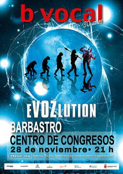 En su nuevo espectáculo, B VOCAL (que en 2025 celebran su 30 aniversario) se adentra con el público en un impresionante viaje en el tiempo, desde los monasterios y las tabernas medievales hasta las discotecas y los grandes conciertos, pasando por los mejores momentos de la historia en los que la VOZ ha evolucionado a través de la música, llenando de energía y emoción a la humanidad. También el público podrá descubrir los momentos más personales y divertidos del grupo y disfrutar de su propia EVOZLUTION.